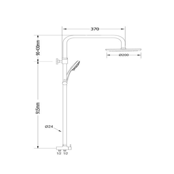 - Ρυθμιζόμενο συνολικό ύψος ντουζιέρας 1005-1345mm