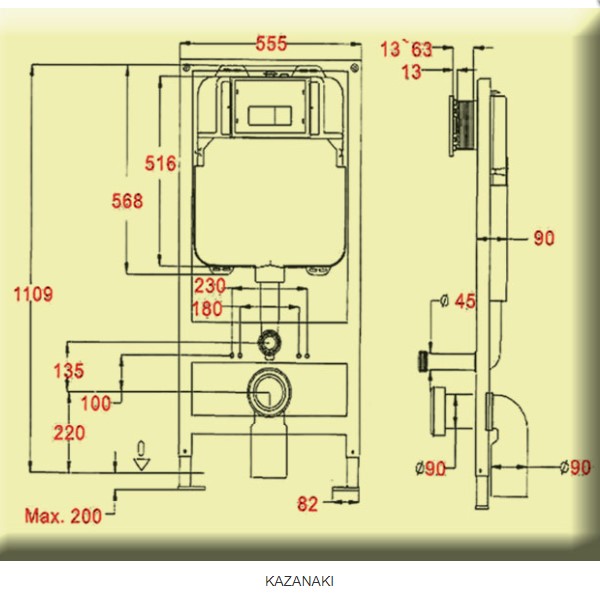 - Καζανάκι εντοιχισμού για τοίχο ή γυψοσανίδα.