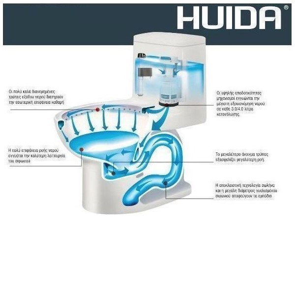 - Λεκάνη χαμηλής πίεσης, πίσω σιφόνι, με κάλυμμα slow down HUIDA με ταχεία τοποθέτηση.