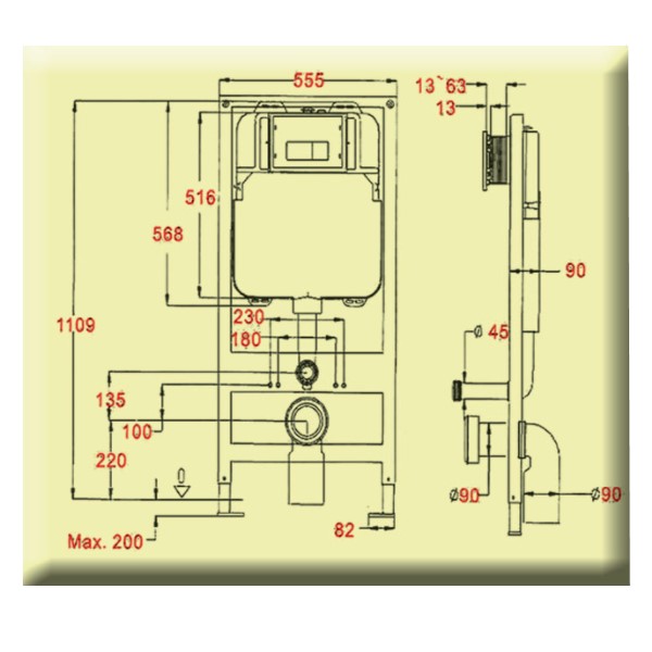 - Διάσταση Καζανακίου: 50x10cm.