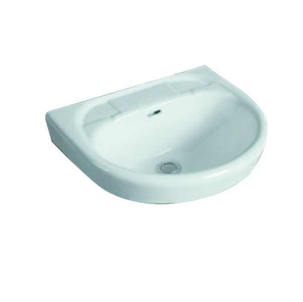 Νιπτήρας πορσελάνης της HUIDA για τοποθέτηση στον τοίχο με στριφώνια.