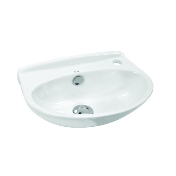 Νιπτήρας πορσελάνης στρογγυλός για τοποθέτηση σε πάγκο με οπή για τοποθέτηση μπαταρίας.