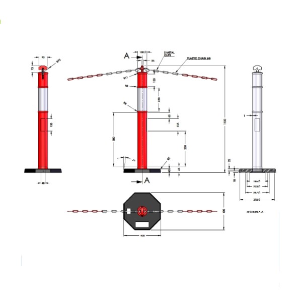 Μεγάλη κολώνα με βαριά λαστιχένια βάση. Μένει στη θέση της χωρίς βίδωμα και συνδυάζεται με πλαστική αλυσίδα PARK-CH-1.