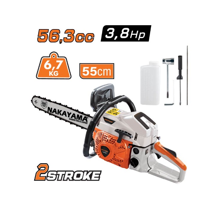 Το αλυσοπρίονο της Nakayama λειτουργεί με βενζινοκινητήρα 1.4 ίππων και κυβισμό 25cc.